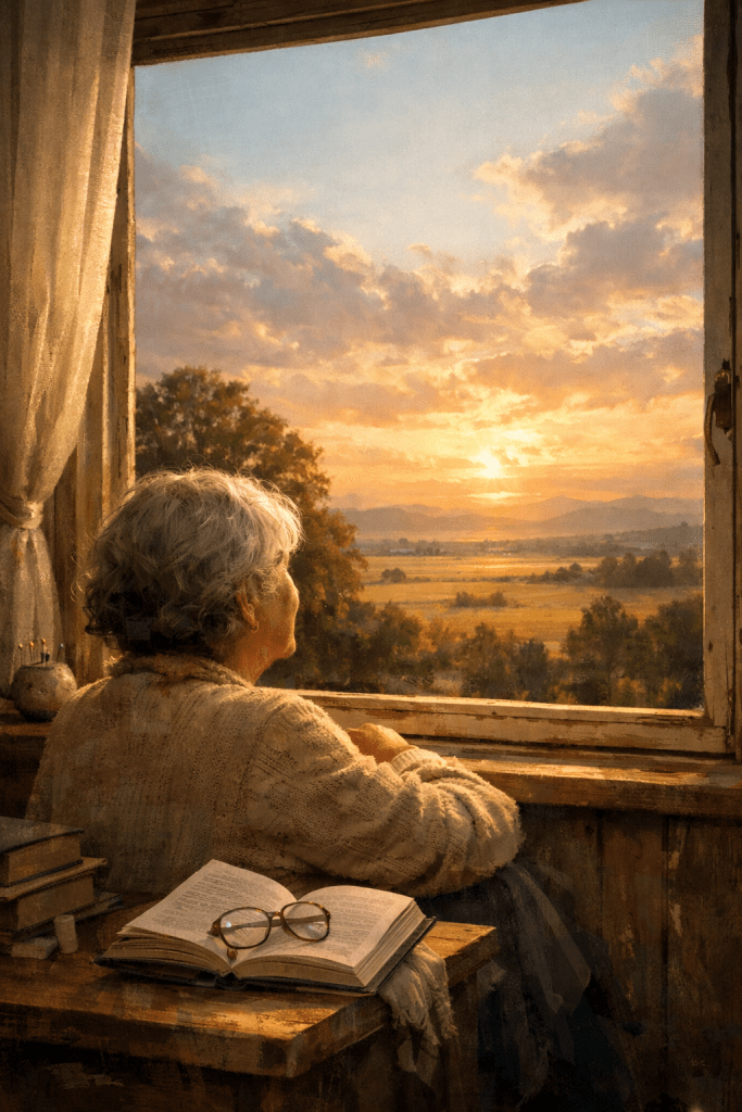 Eso es lo que hacía mi abuela: mirar lejos cuando la vista de cerca no nos lleva a ningún sitio. Ese pequeño gesto está ahí para recordarnos que hay más espacio que nuestra pequeña mente, mucho más, que hay muchos más sitos adonde ir. Y, de vez en cuando, eso es suficiente para que el árbol vuelva a ser un árbol, la dificultad vuelva a su tamaño real y nosotros volvamos a la página —o al amor, o a nuestra vida— con la vista en condiciones de enfocar bien, de ver. lo que realmente hemos de ver.